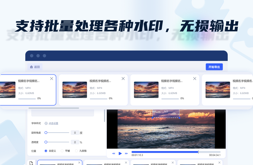 Video watermarking: Supports adding static or dynamic watermarks (such as rolling subtitles, transparent LOGO) to the video screen, and the display duration and appearance/disappearance time of the watermark can be customized. Supports batch processing of multiple video files.