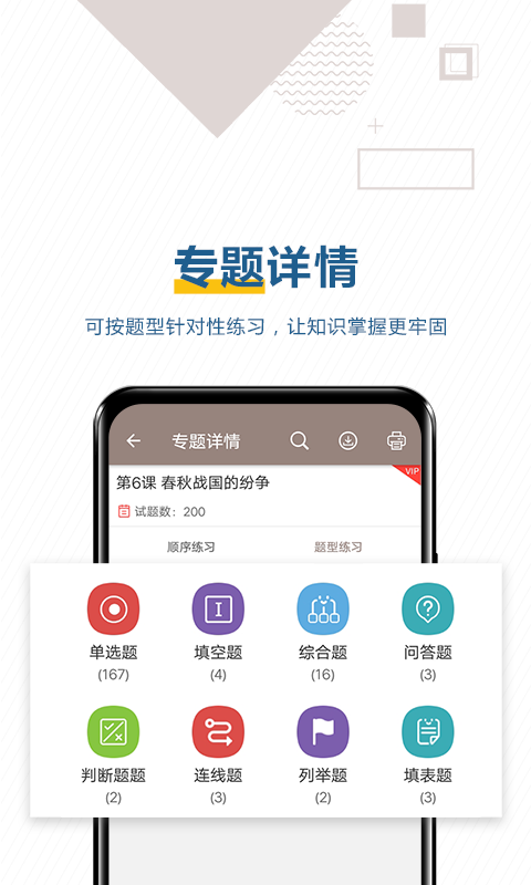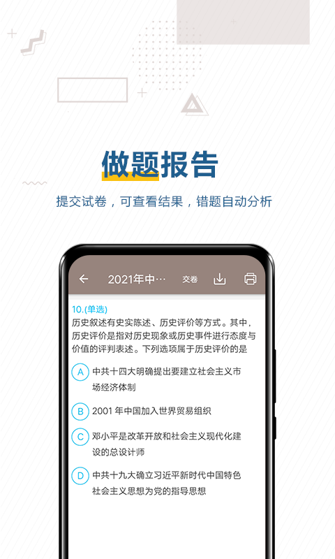 Test questions: practice real questions and simulated questions continuously, and automatically analyze wrong questions
