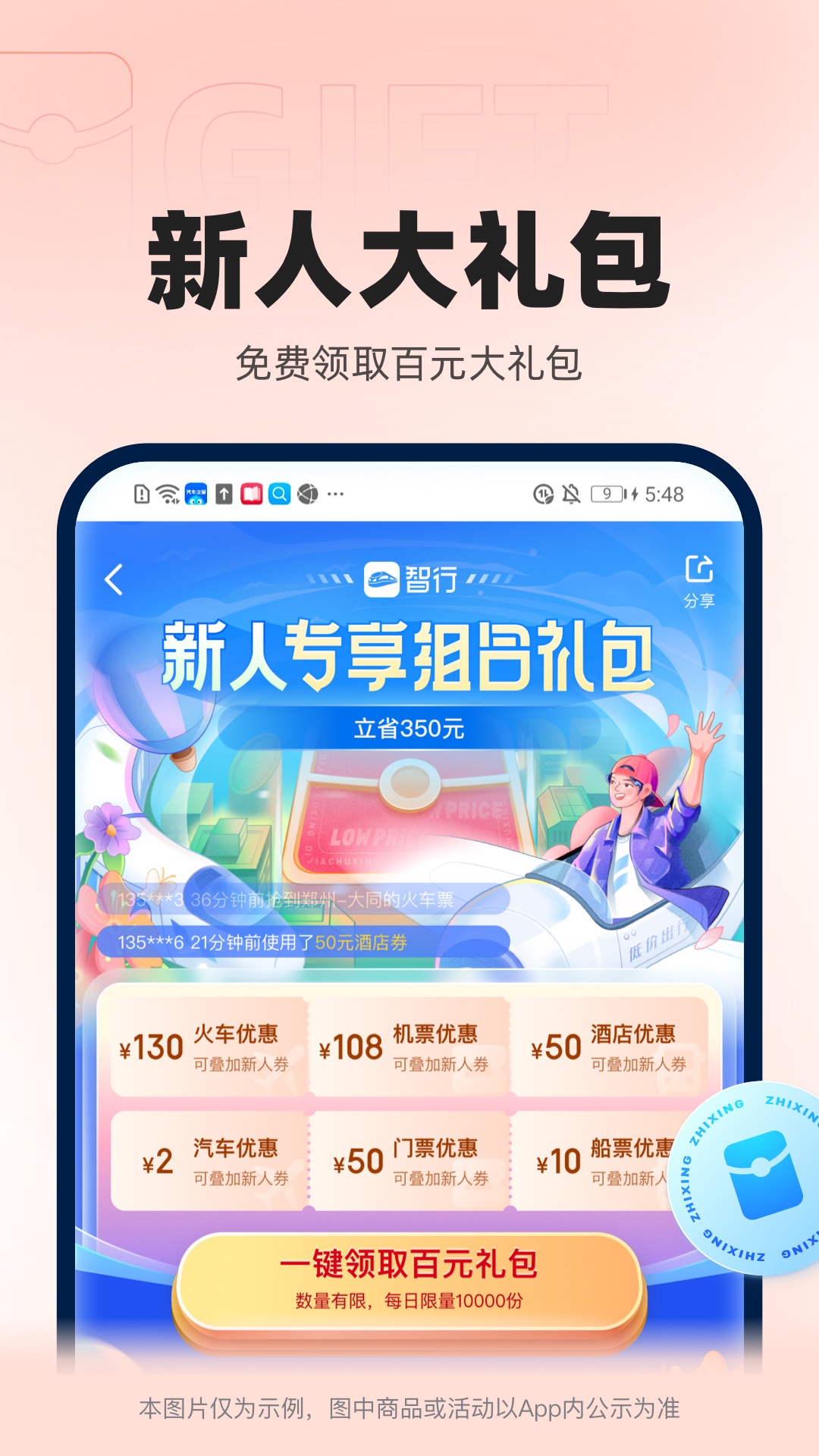 You can earn 10 yuan for each air and rail trip, and new customers can enjoy an instant discount of up to 60 yuan on air tickets.
