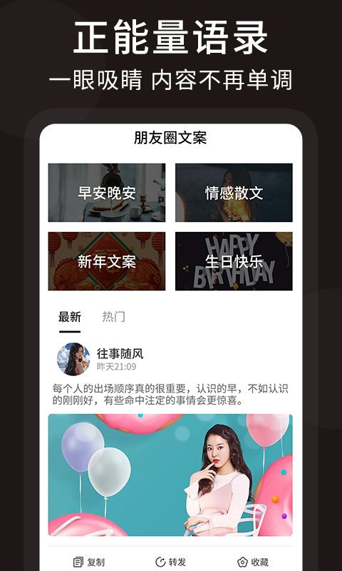 Copywriting resources: covering daily sharing, emotional expression, holiday blessings, micro-business promotion, inspirational positive energy and other types to meet the needs of different scenarios.