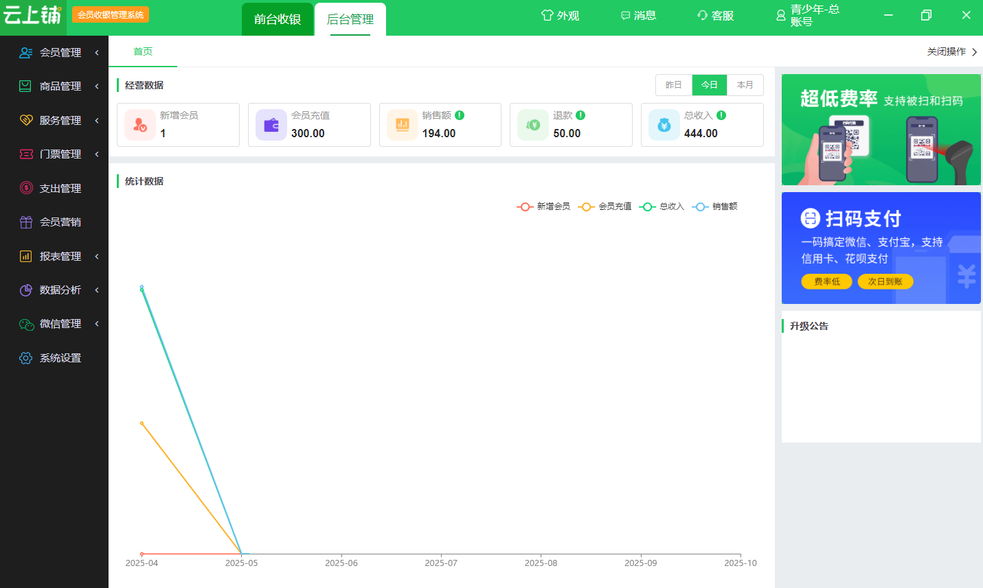 Yunpu membership management cashier system