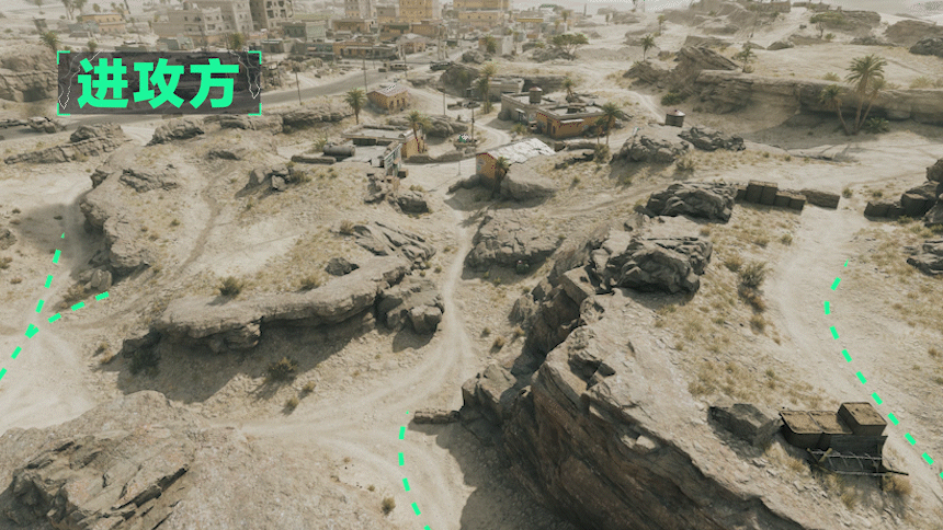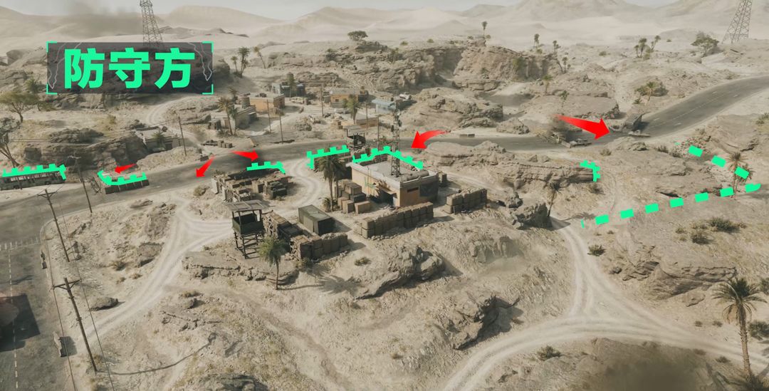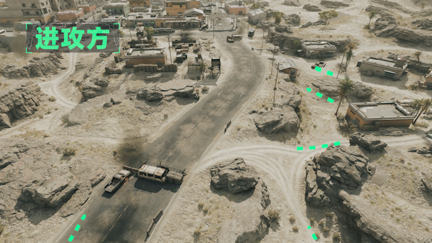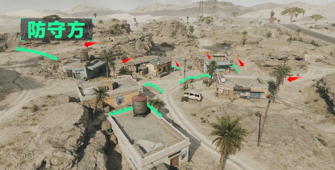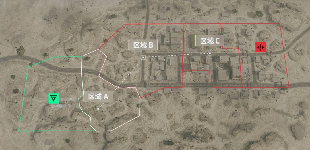 The defenders need to rely on the houses in the village to build a deep defense line, and at the same time keep an eye on the attackers' infiltration forces at the entrance to the west passage and the two rooftops, and use tactical props to interfere with their firepower in a timely manner. When necessary, a small amount of defensive force can be deployed to Area B, and sniper-type weapons can be used to strike accurately from the flanks and from long distances, forming a near- and long-range coordinated defense network with close combat teammates in the village.