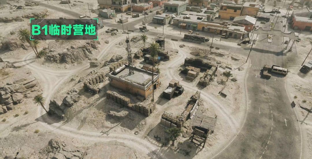 B1 is a "temporary camp", with an independent building in the center of the area as the core, surrounded by sand walls, and two simple sentry towers to form a basic defense system.
