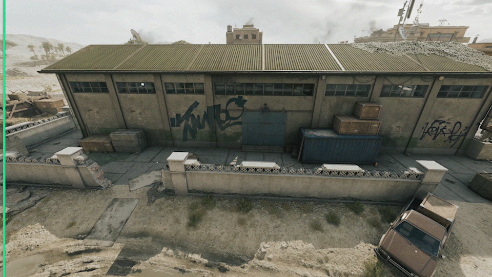 The fixed machine gun on the second floor of the warehouse can block the main entrance without blind spots, but it is not invulnerable - the warehouse wall can be destroyed with wall-breaking weapons, and the two northern back doors are weakly defended and can easily be bypassed and attacked. For the attacker, the optimal strategy is to feign attack from the main entrance to attract firepower, while at the same time go around from the back entrance on the north side, conduct simultaneous assaults through multiple channels, and quickly suppress the stronghold.