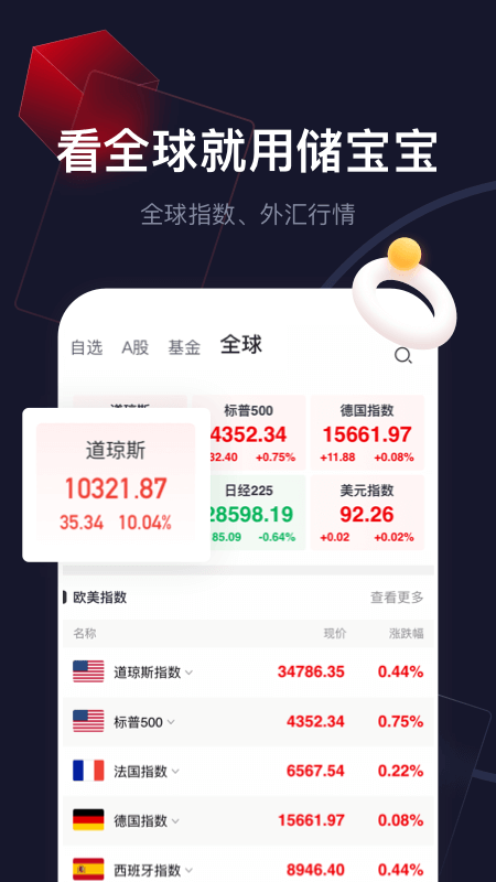 Global index and foreign exchange market: covering major global indexes and foreign exchange market, providing users with a comprehensive market service experience.