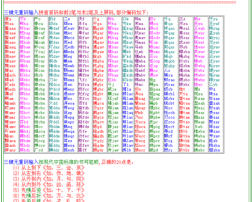 Contains three-button code input without duplication, 1 key to type the first 2 strokes after the first pinyin code, 2 strokes at the end, and the program to display the code on the screen, which will automatically appear on the screen!