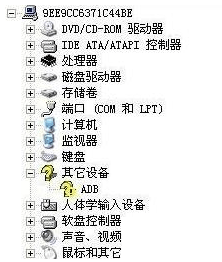 Find out if there is a device with a yellow question mark (as shown below). If it is not found, it means that the ADB driver may have been installed, go to the next step.