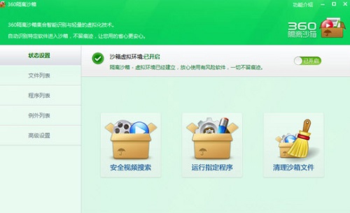 1. The function identification of the official version of the 360 Isolation Sandbox Independent Edition requires isolation programs: isolate and run risky software, so you can try the software without worrying about poisoning;