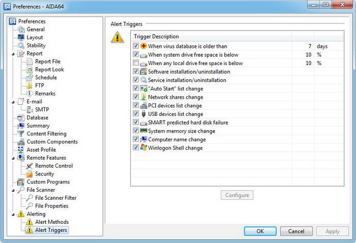 AIDA64 supports over 150 various sensor devices to measure temperature, voltage, fan speed and power consumption. Measurements can be displayed on the system tray icon, OSD panel, sidebar widget, and Logitech G15/G19 Gaming Keyboard LCD. The values can also be logged to a file or exported to external applications such as RivaTuner or Samurai. AIDA64 can also alert the user when it detects overheating, overvoltage, or cooling fan failure.