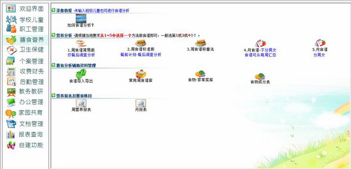 Wisdom Tree Kindergarten meal nutrition calculation and analysis software