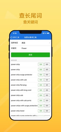 Real-time search for long-tail keywords to assist sellers in optimizing keyword search rankings.