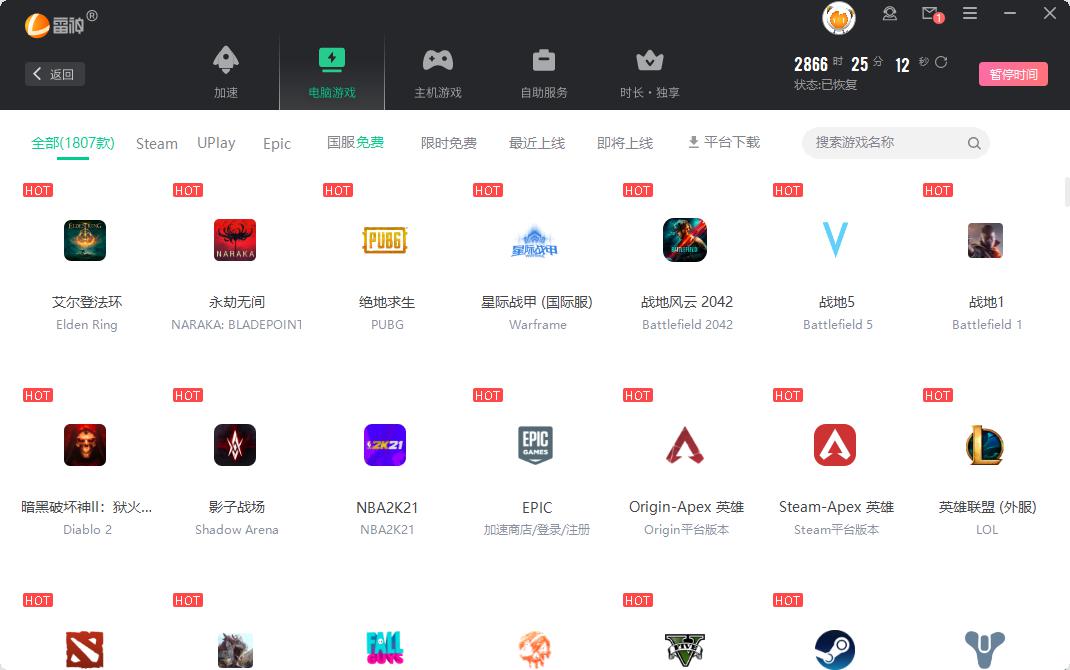 Features: Timely updates support thousands of online games, long-term free acceleration of various popular games, and now you can limit the suspension and resumption of the client.