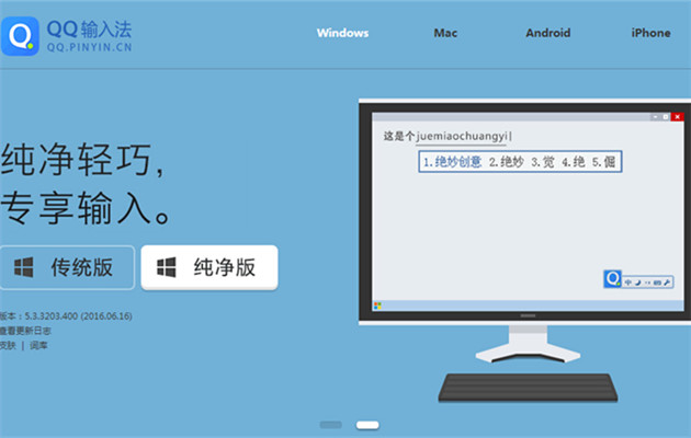QQ Pinyin input method software takes up little memory, has stable performance, is free of any bundles, is green and safe, QQ input method is truly a conscientious software! This site also has Sogou input method, Baidu input method, and Google input method for you to download!