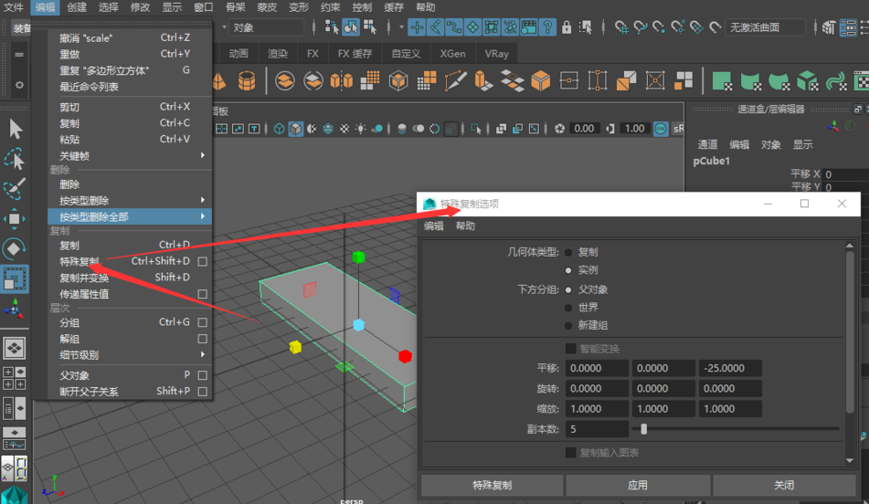 2. Click [Edit] in the Maya menu bar and click [Special Copy] in the pop-up options, or use the shortcut key Ctrl+Shift+D to open the special copy options window.
