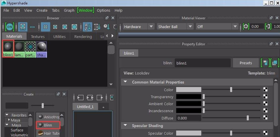 2. Open the Maya material editor; create a new material ball