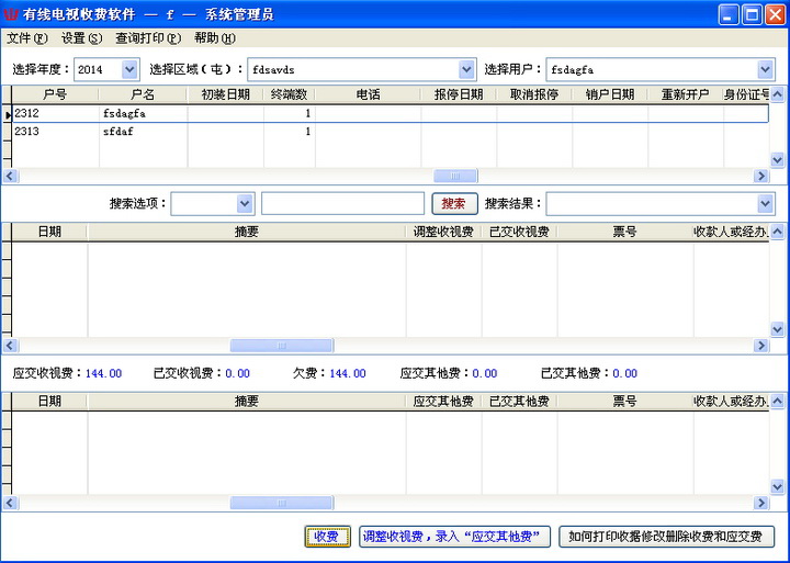 In the two lists below the main interface, click on the "Adjusted viewing fees, paid viewing fees, other fees payable, other paid fees" that you want to modify or delete, right-click the mouse and select "Modify" and "Delete".