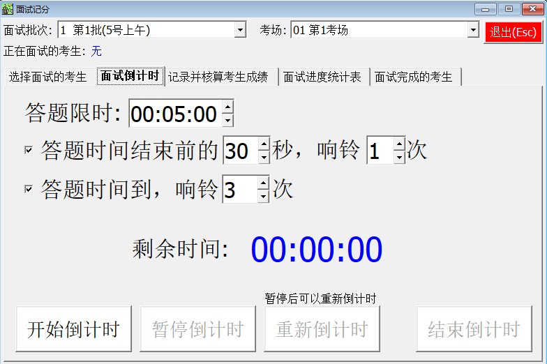 05. Countdown to answer the question. The candidate interview scoring function provides a countdown function for the answer time. You can set two sound alarm reminders before the answer time is up and at the end of the answer time.
