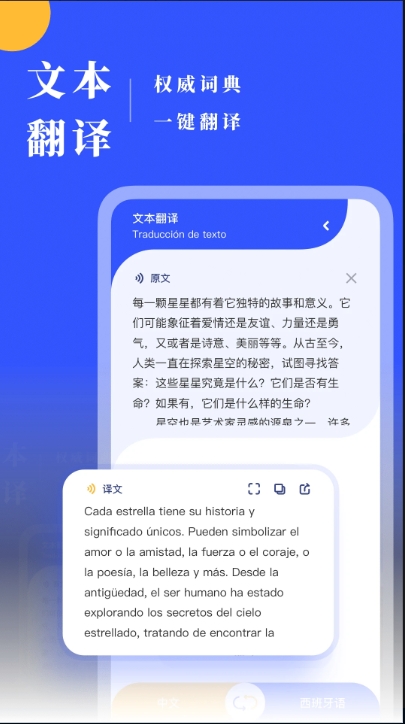 Text Translation: Supports two-way translation between Spanish and Chinese. You can quickly get results by inputting text. It is suitable for learning, writing and other scenarios.