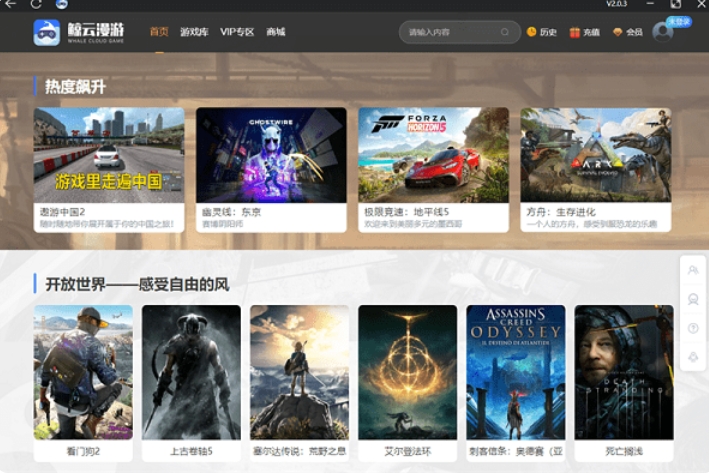 Whale Cloud Roaming is a software that focuses on providing high-quality game cloud experience. It uses cloud computing power to realize click-and-play mobile games/client games. You can enjoy 3A-level game image quality without downloading. Currently covering 200+ mainstream games, the membership model includes unlimited time packages, making it the ultimate solution for mobile game enthusiasts and cross-platform players. The cloud is equipped with a flagship graphics card (RTX 4080 cluster), and the 4K/120 frame quality option completely gets rid of device performance limitations. Friends who like Whale Cloud Roaming come to Huajun Software Park to download and experience it!