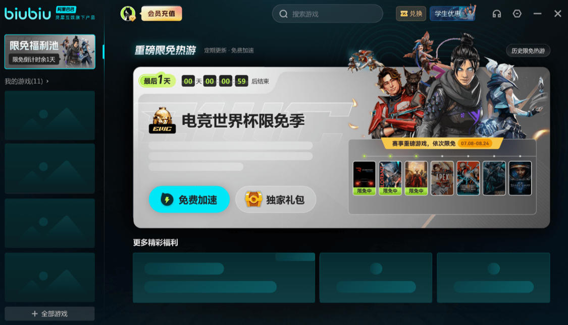 Free service: Provides basic acceleration functions and supports 2,500+ popular mobile games. New users can enjoy 24 hours of free time. Enter the password [biubiu without lag] to get an additional 72 hours of free acceleration.