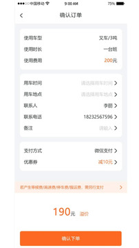 Vehicle model selection: Users can select vehicle types such as cranes and forklifts according to their needs, and view vehicle pictures and detailed information.
