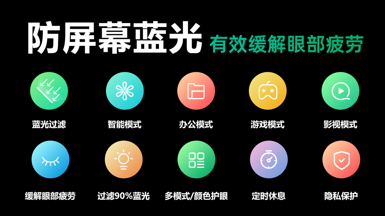 Intelligent filtering of blue light, blocking 90% of screen blue light, protecting eyes starting from the screen