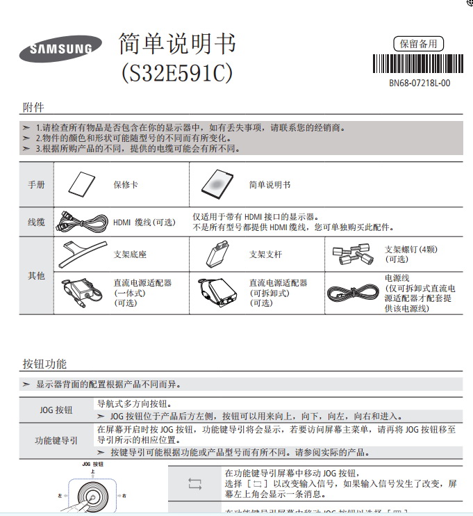 3rd floor Huajun netizen 2020-02-26 19:24:49The overall feeling of the Samsung S32E591C LCD monitor instruction manual is good. I am quite satisfied with it. The installation and operation are very smooth! It went very smoothly following the installation step-by-step instructions!