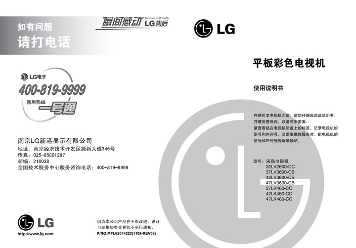 3rd floor Huajun netizen 2018-03-01 08:42:16The instruction manual for LG 47LV3600-CB LCD color TV is comprehensive and easy to use.