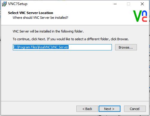 4. Select the RealVNC installation location and click [browse]. In the window that opens, you can select the software installation location yourself. After completing the selection, click [next].