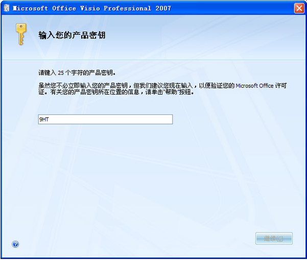 2. After entering the installation program, you first need to enter the product key in the middle of the screen. If the input is correct, a green "√" will appear behind the input box, and then click "Continue".