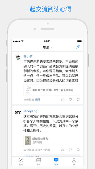 5. Open the thoughts column and you can freely express your own thoughts, or browse friends’ thoughts and books they have read and their experiences.