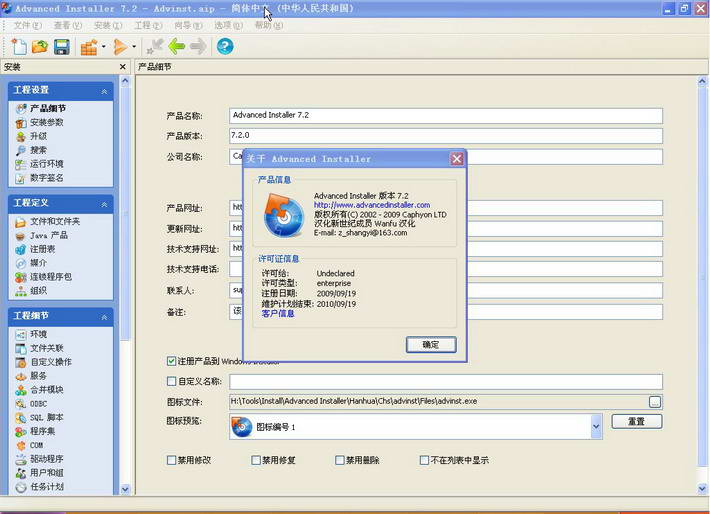 - Chinese cultured the main programs AdvancedInstaller.exe, uires.dll, updater.exe;