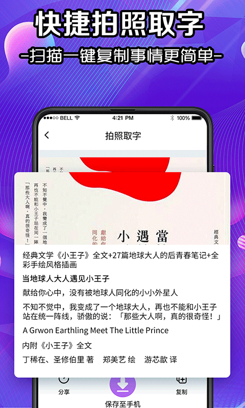 Scan King Android version is a file scanning software that is very popular among users. The Scan King app supports text in multiple languages. You only need to use the official Scan King download to scan the text to get text information. The Scan King app software can also convert file formats, making browsing more convenient!
