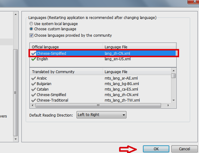 4. Then select the “Simplified Chinese” option in the page that appears and click the “ok” button.