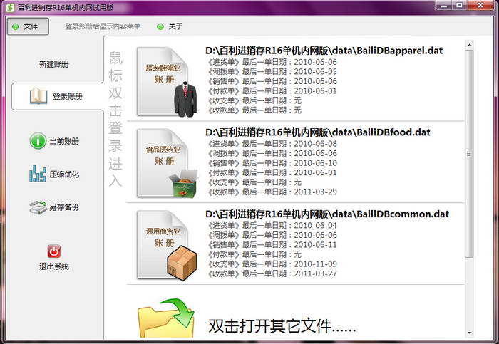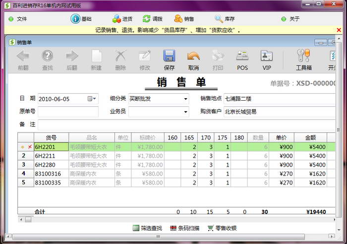 Baili clothing purchase, sale and inventory management system version R16 is a new generation product developed by us based on many years of user experience. It has complete functions, is simple and practical, and has been successfully used by well-known brands such as Zisierli and Trend Frontline. The software interface is refreshing and concise, and the operation is very simple. It is divided into stand-alone version and network version for users of different sizes. At the same time, the software is constantly updated and upgraded. Welcome to download and experience it.