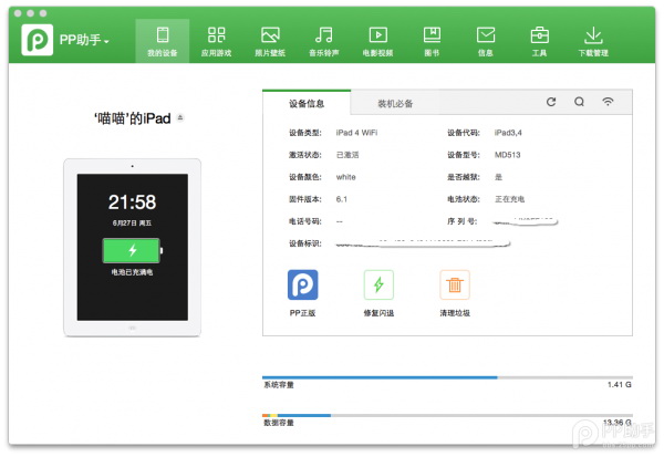 PP Assistant Mac version has a crash repair function, so crashes and pop-ups are no longer annoying. If a crash occurs while the software is running, just open PP Assistant and click the "Crash Repair" button to easily complete the crash repair.