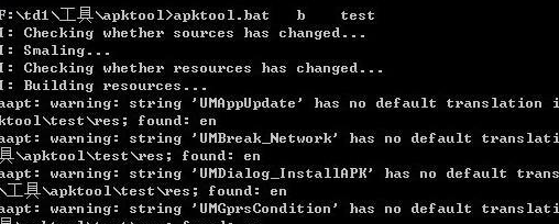If you want to repackage the decompiled file into an apk, then you can: enter apktool.bat b test (the folder you compiled).
