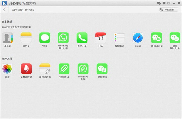 Supports the recovery of WeChat, QQ, address books, memos, text messages and other data