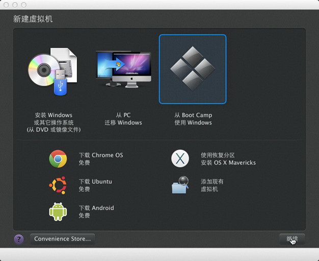 3. Enter the BootCamp Assistant option task interface. You can select one or more tasks. You can choose to create a Windows 7 or higher version installation disk, install Windows 7 or higher version, or download new Windows support software from Apple. After selecting, click the [Continue] button.