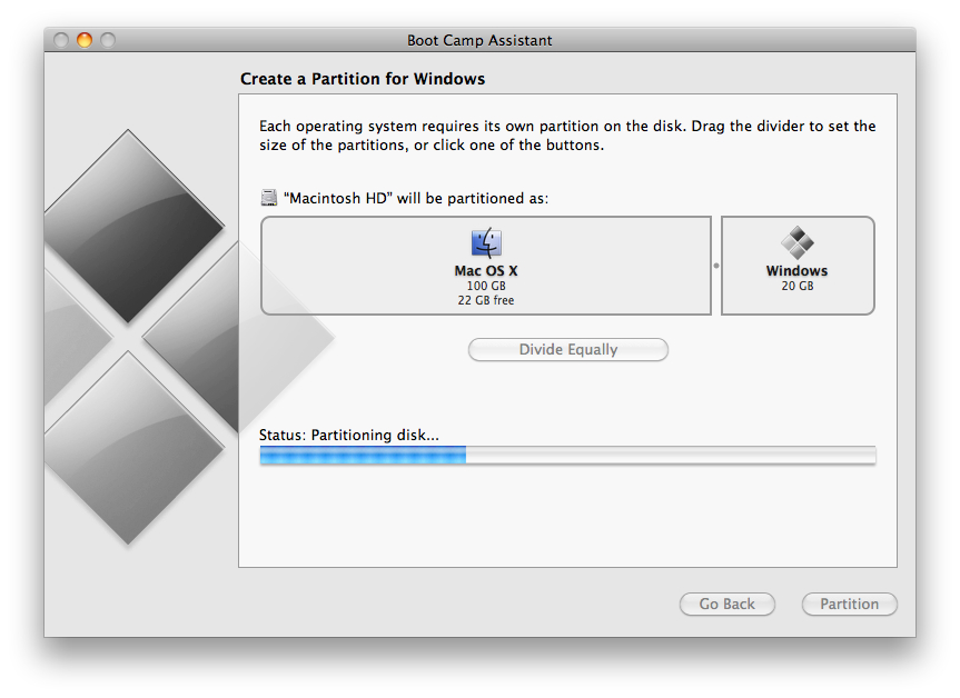 8. The BootCamp software is loading and partitioning, you just need to wait patiently. Your computer will automatically restart after the partition is completed.