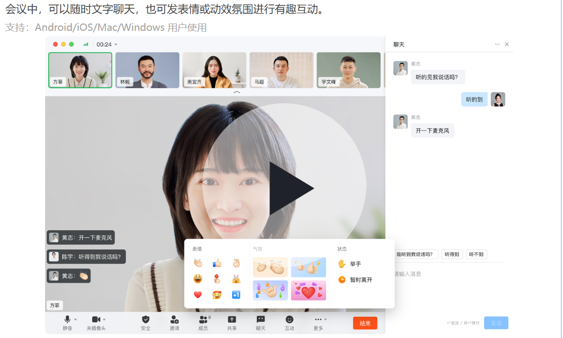 Provides high-definition video conferencing, supports screen sharing, real-time annotation and multi-person speaking to meet remote collaboration needs.