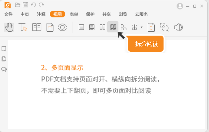3. Flexibly set the PDF reading mode - supports three document display modes: reading mode, reverse reading mode and text viewing mode; supports multiple page display modes: full screen display, single page display, continuous page display, split display, double page display, double page continuous display, separate cover display in double page display mode, automatic scrolling display; supports page transition effect settings.