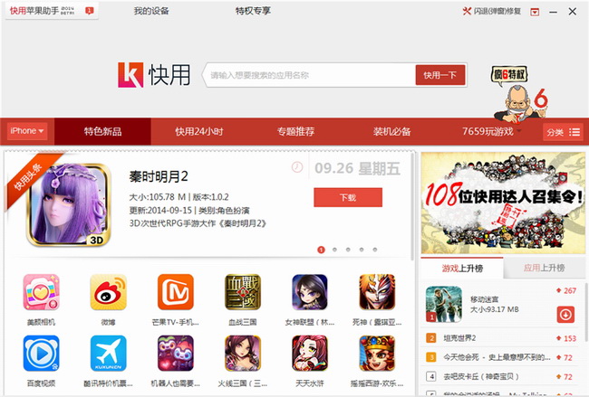 2nd floor Huajun netizen 2018-05-25 02:26:34The interface design of Kuaiyong Apple Assistant is very easy to use and has rich functions. I highly recommend it!
