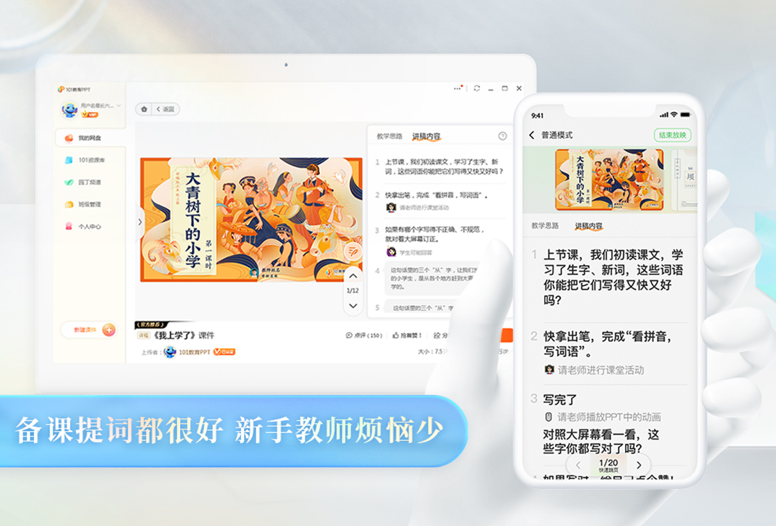PC side: core lesson preparation platform, supporting complex courseware production and resource management;