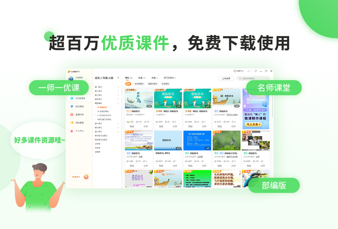 101 Education PPT: Covers various teaching stages, such as preschool, middle and higher vocational school, etc. It has rich courseware resources and teaching tools, and also supports teachers to edit exercises independently.