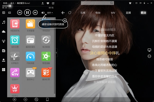 独创逐字精准KRC歌词,在手机上也能和朋友一起K歌了!自主研发逐字精准KRC歌词,随时随地卡拉OK