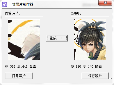 3. Open the Feiyang One-inch Photo Generator and select the [Open Photo] button, and select the one-inch photo you want to generate, as follows: