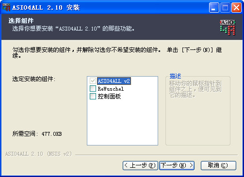 4. Select the ASIO4ALL component that needs to be installed. When you point the mouse at the corresponding component, you can see the detailed description. After selecting, click "Next".