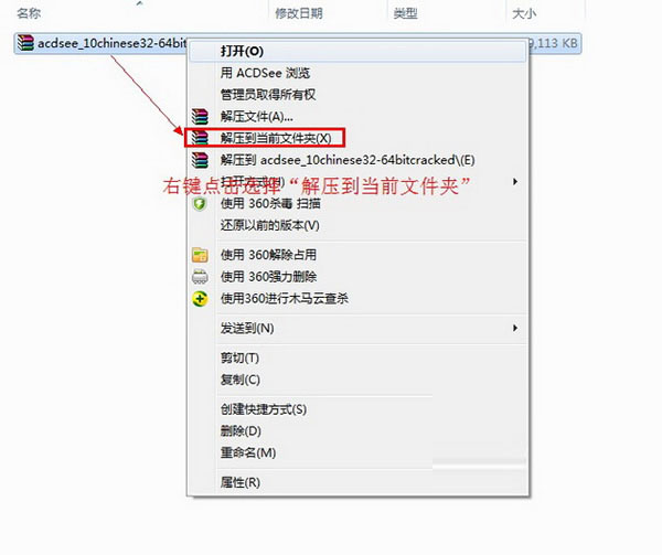 Step 1: Unzip the file, right-click and select the ACDSee10.0 file package to extract it.