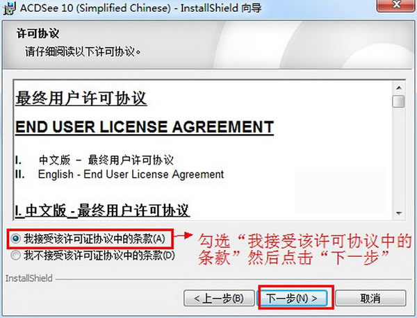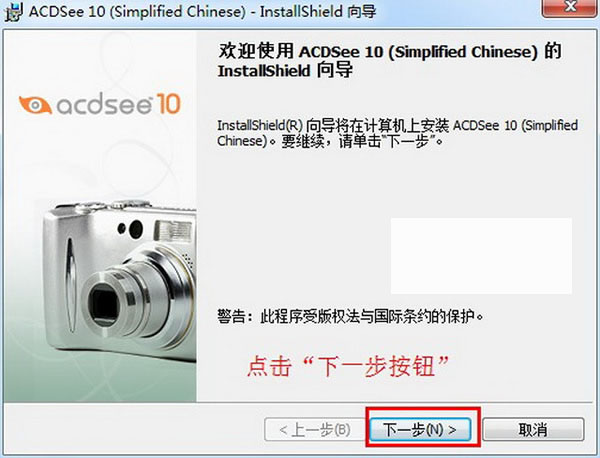 Step 3: Installation wizard, click the "Next" button to continue. 4 Step 4: In the ACDSee10.0 license agreement interface, check "I accept the terms of this license agreement" and click the "Next" button.